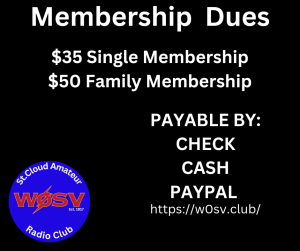 2026 will be here soon! Our treasurer, Kay Welsand, will accept payments for next year’s dues by check, cash, or PayPal at any Ham meeting. Annual membership is $35 per individual or $50 per family. Lifetime membership is $400.